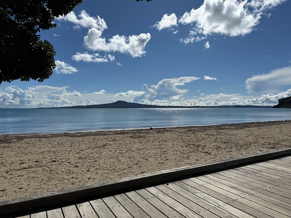 I messaged Morg to see if it was ok to pop up and see the house had been working on. I had to leave it an hour as they were cutting and when I listened with my bat like hearing I could see what he meant about the noise levels! It was really loud even from the village! So I went and got an iced coffee from the other bakery and a lemon tart from him as they are his favourites, and went and sat on the bench looking out at Rangitoto Island trying to memorise the view.